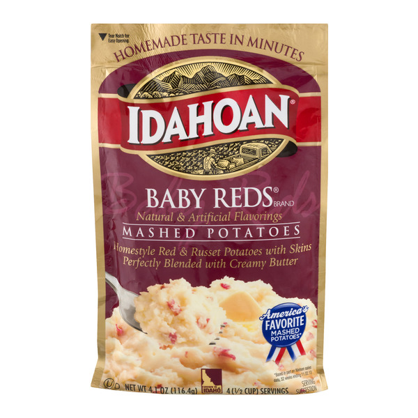 Idahoan Baby Reds Mashed Potatoes 4.1 Oz "1/2 Cup: 110 Calories, 2.5g Total Fat, 0mg Cholesterol, 300mg Sodium, 21g Total Carb, 2g Protein" ![]() |