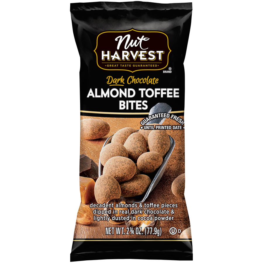 Almond Toffee Bites 2 & 3/4 Oz "Per Package: 410 Calories, 23g Total Fat, 15mg Cholesterol, 200mg Sodium, 4g Protein" ![]() |