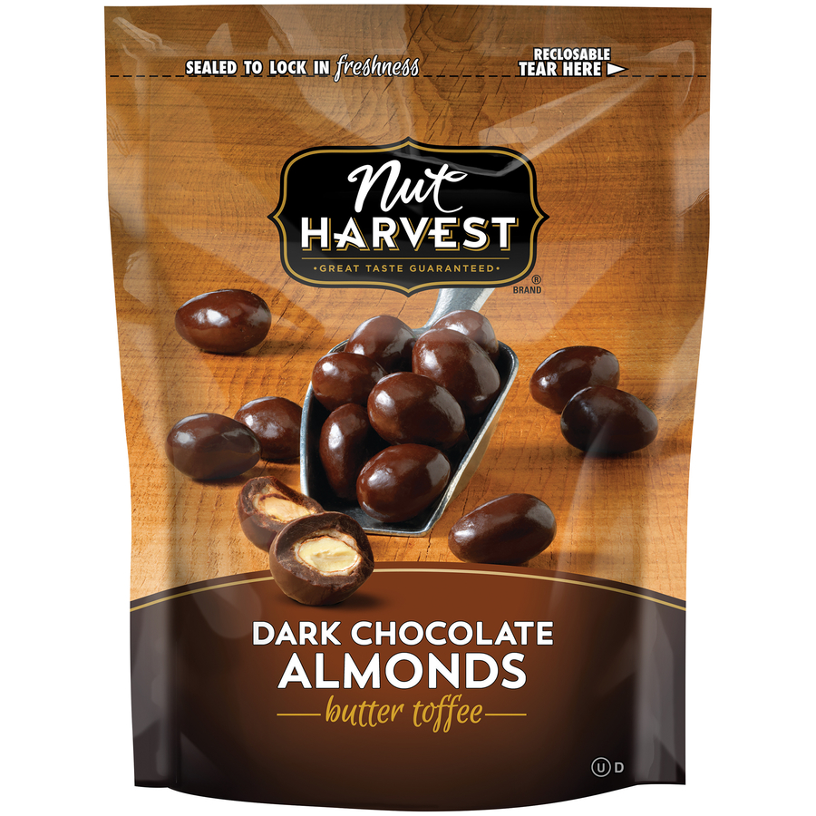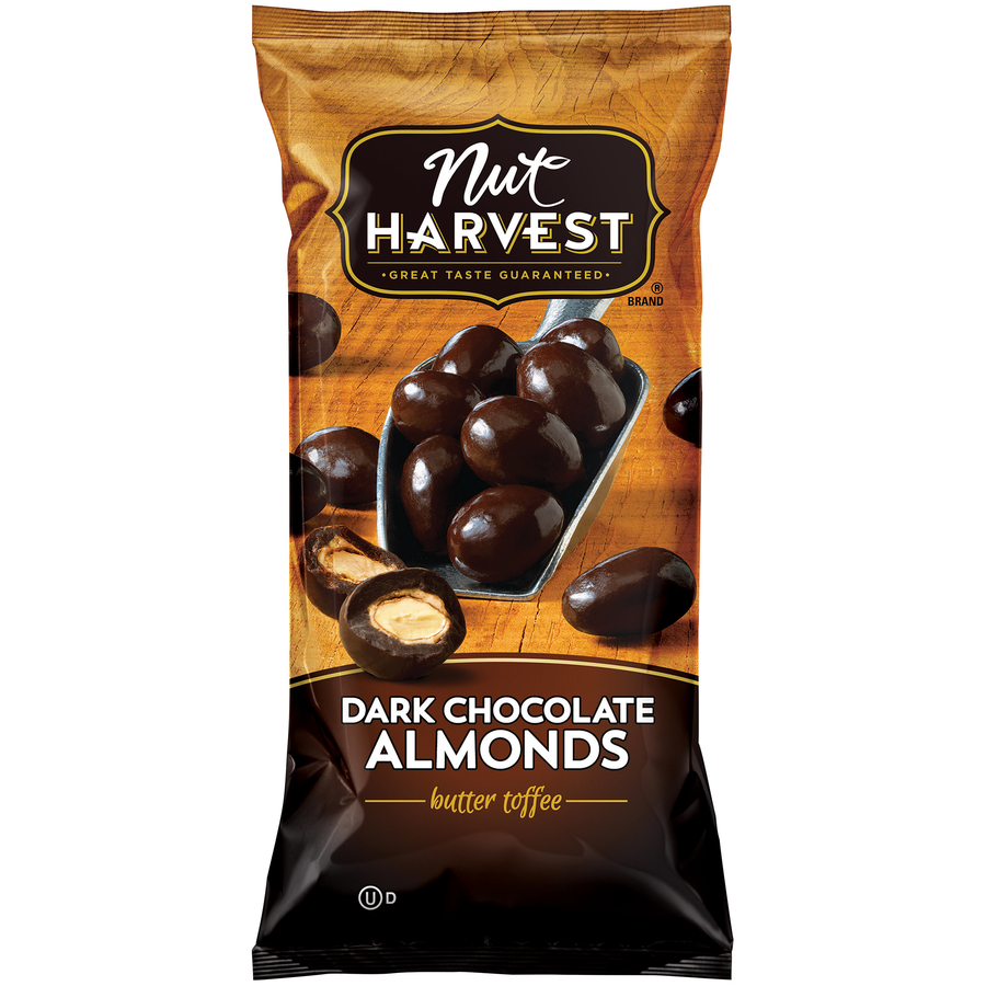 Dark Chocolate Toffee Almonds 5.5 Oz "Per Package: 150 Calories, 8g Total Fat, 0mg Cholesterol, 45mg Sodium, 2g Protein" ![]() |