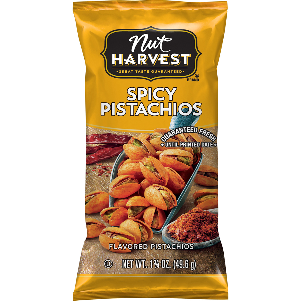 Flavored Spicy Pistachios 1 & 3/4 Ounces "Per Container: 160 Calories, 13g Total Fat, 0mg Cholesterol, 110mg Sodium, 6g Protein" ![]() |