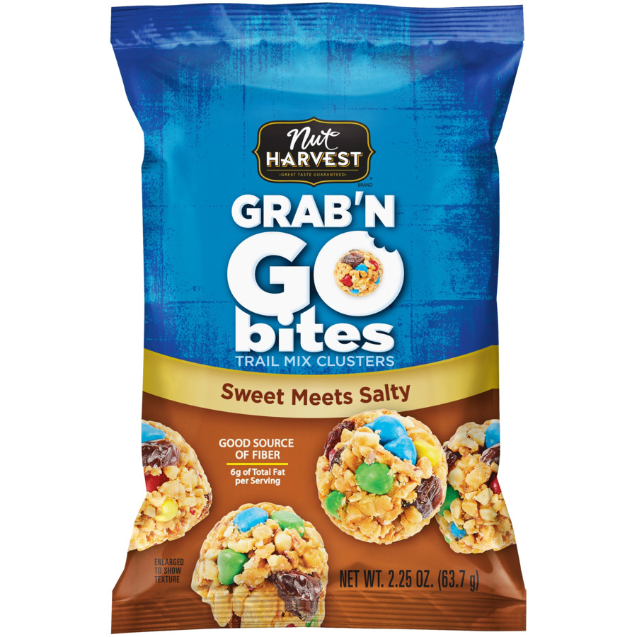 Grab'N Go Bites Trail Mix Clusters 2.25 Oz "Per Package: 300 Calories, 14g Total Fat, 0mg Cholesterol, 210mg Sodium, 7g Protein" ![]() |