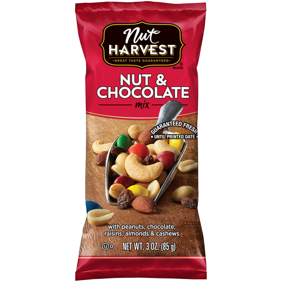 Nut & Chocolate Mix 3 Oz "Per Package: 340 Calories, 23g Total Fat, <5mg Cholesterol, 135mg Sodium, 10g Protein" ![]() |