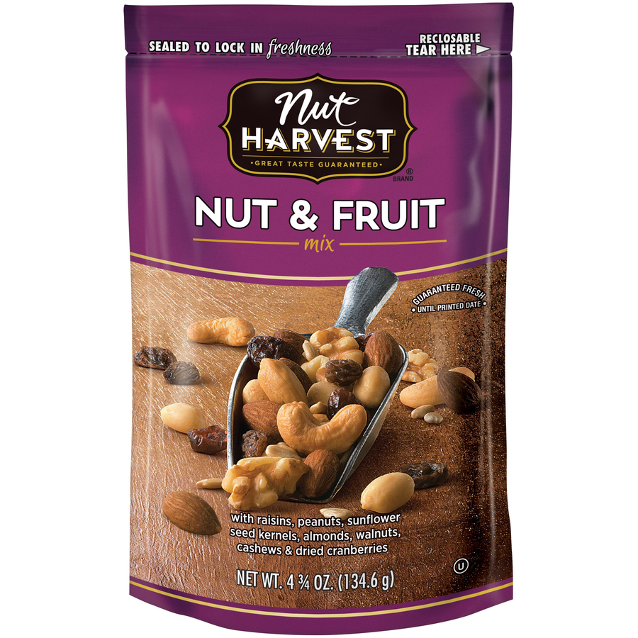 Nut & Fruit Mix 4 & 3/4 Oz "Per 1/4 Cup: 140 Calories, 11g Total Fat, 0mg Cholesterol, 65mg Sodium, 4g Protein" ![]() |