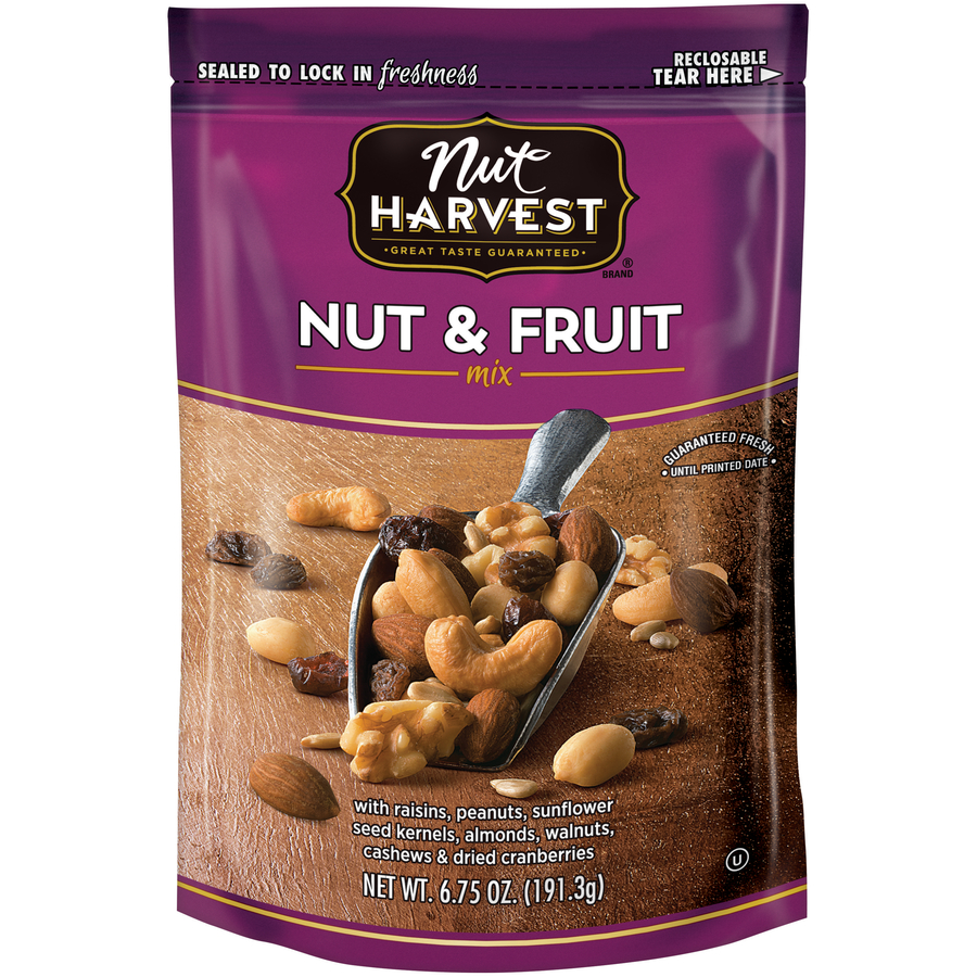 Nut & Fruit Mix 6.75 Oz "Per 1/4 Cup: 140 Calories, 11g Total Fat, 0mg Cholesterol, 65mg Sodium, 4g Protein" ![]() |