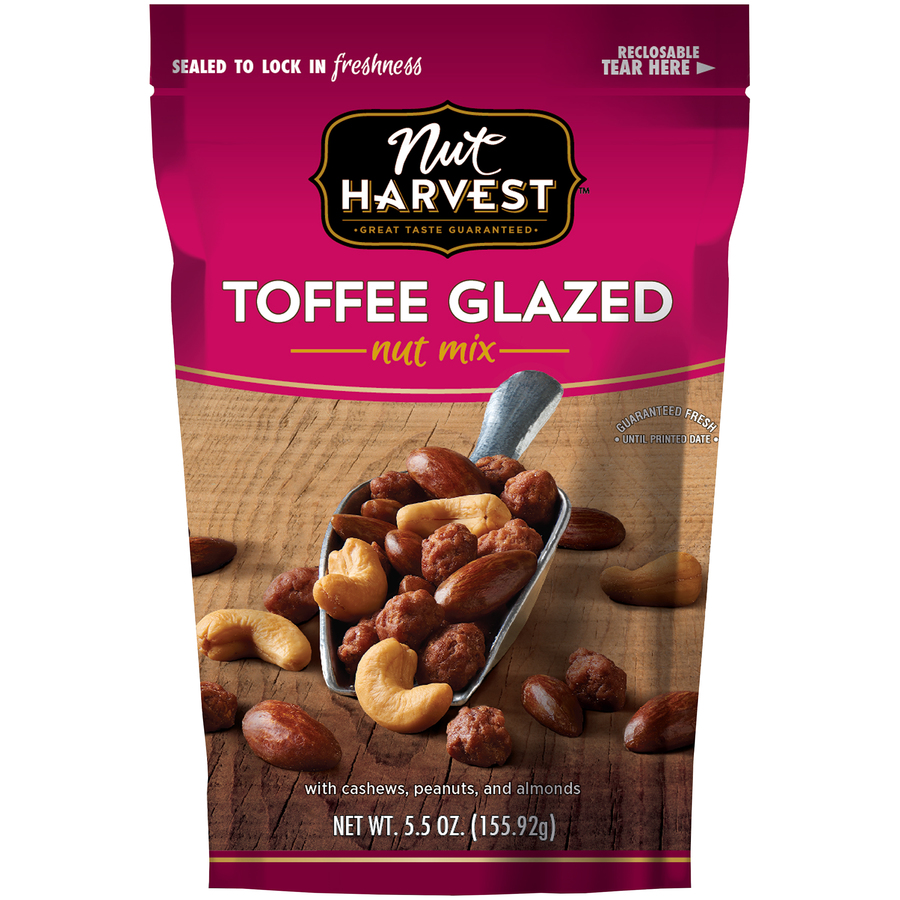 Toffee Glazed Nut Mix 5.5 Oz "Per Package: 160 Calories, 11g Total Fat, 0mg Cholesterol, 115mg Sodium, 4g Protein" ![]() |