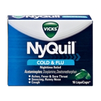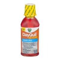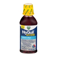 NyQuil Severe Cold And Flu 12 FL Oz "Headache, Fever, Sore Throat, Minor Aches, Pains, Sneezing, Runny Nose And Cough. Acetaminophen, Phenylephrine HCI, Doxylamine Succinate, Dextromethorphan HBr. 10% Alcohol" ![]() |