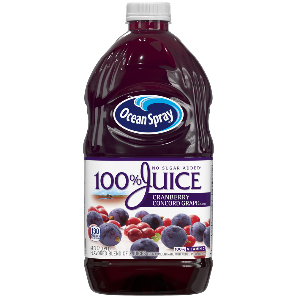 100% Juice Cranberry Concord Grape 64 FL Oz "Per One Cup Serving: 130 Calories, 0g Total Fat, 20mg Sodium, 36g Total Carbohydrate, 0g Protein" ![]() |