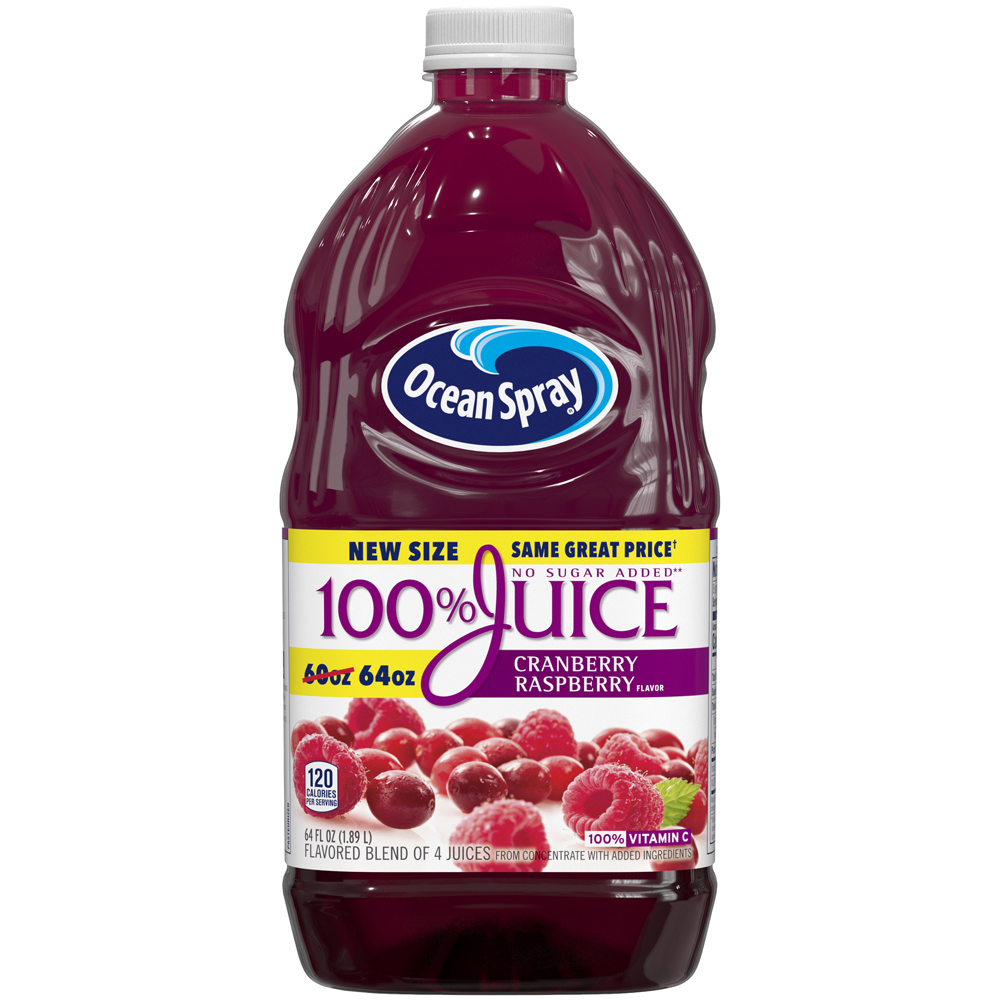 100% Juice Cranberry Raspberry 64 FL Oz "Per One Cup Serving: 120 Calories, 0g Total Fat, 20mg Sodium, 32g Total Carbohydrate, 0g Protein" ![]() |