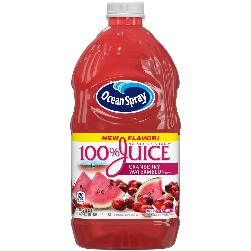 100% Juice Cranberry Watermelon 64 FL Oz "Per One Cup Serving: 120 Calories, 0g Total Fat, 20mg Sodium, 31g Total Carbohydrate, 0g Protein" ![]() |