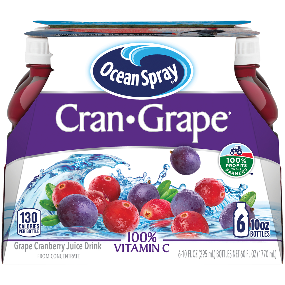 Cran Grape Cranberry Juice Drink Six 10 FL Oz Bottles "Per One Bottle: 130 Calories, 0g Total Fat, 65mg Sodium, 35g Total Carbohydrate, 0g Protein" ![]() |