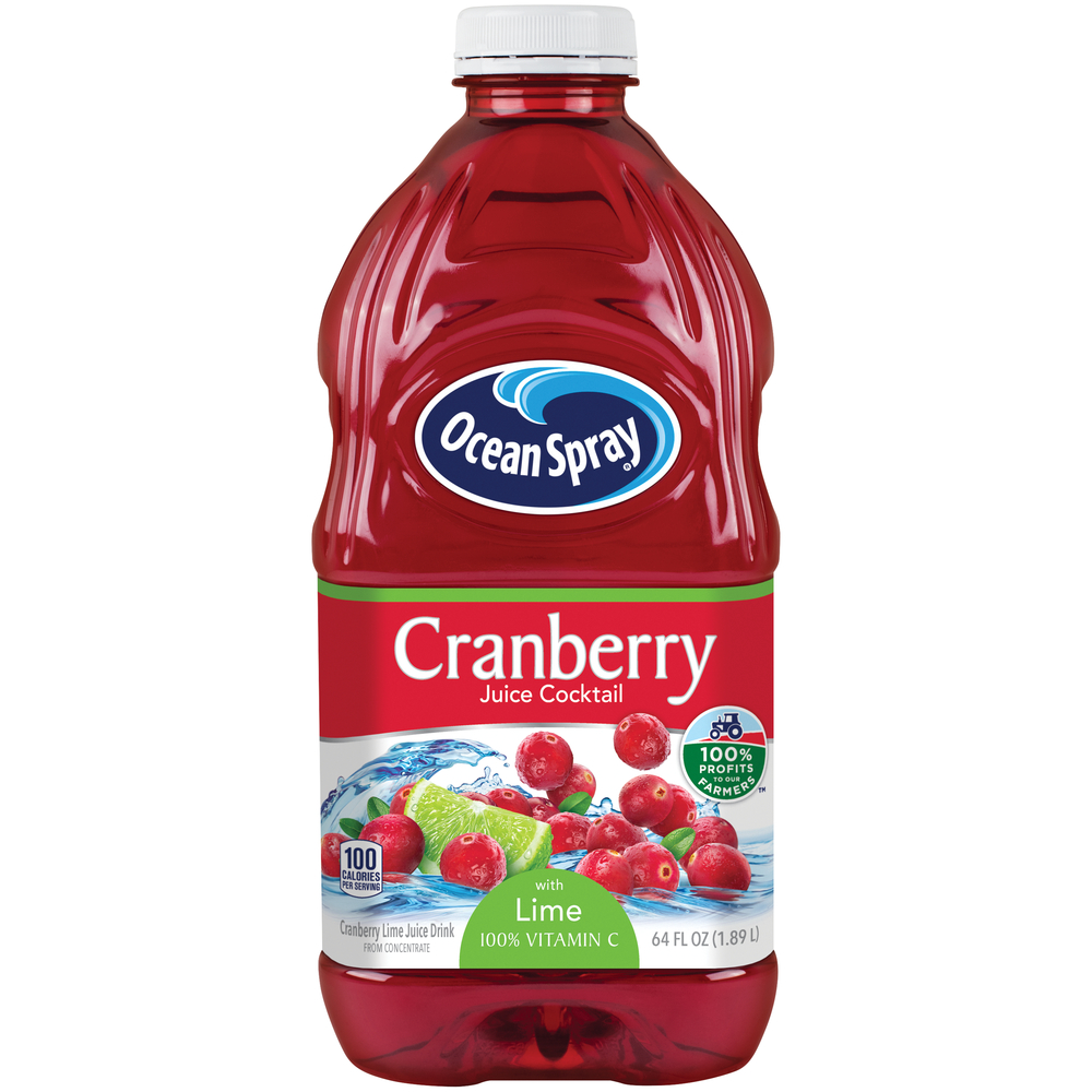 Cranberry Juice Cocktail With Lime 64 FL Oz "Per One Cup Serving: 100 Calories, 0g Total Fat, 55mg Sodium, 28g Total Carbohydrate, 0g Protein" ![]() |