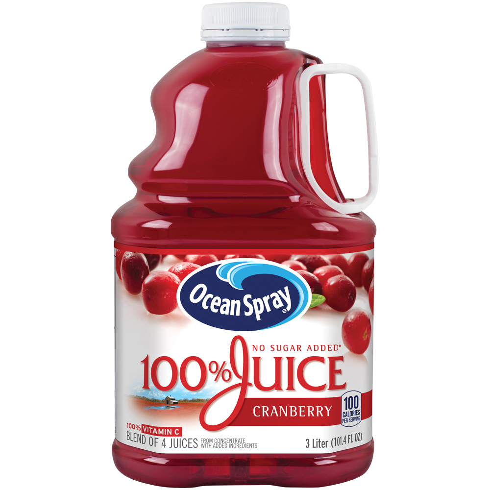 Ocean Spray 100% Juice Cranberry 3 Liter "Per One Cup Serving: 100 Calories, 0g Total Fat, 25mg Sodium, 29g Total Carbohydrate, 0g Protein" ![]() |