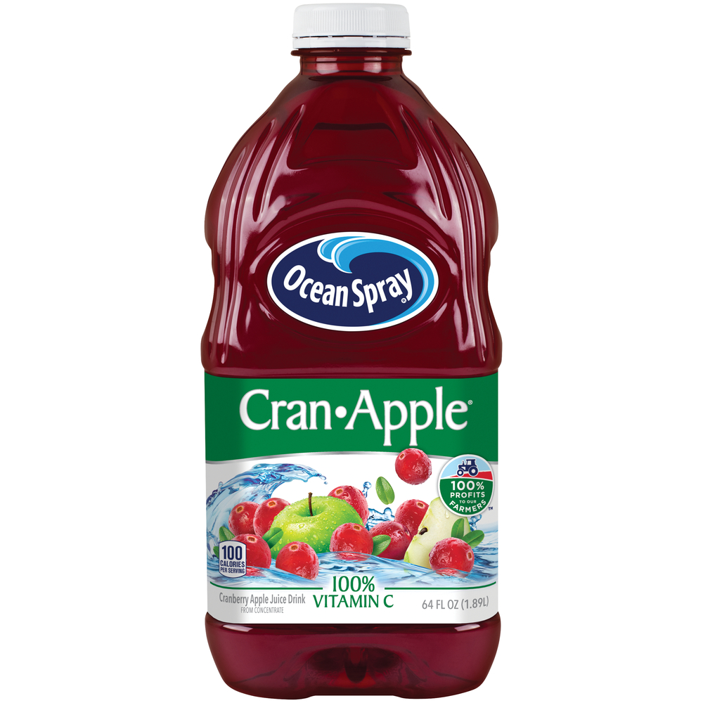 Ocean Spray Cran-Apple Juice Drink 64 FL Oz "Per One Cup Serving: 100 Calories, 0g Total Fat, 45mg Sodium, 27g Total Carbohydrate, 0g Protein" ![]() |