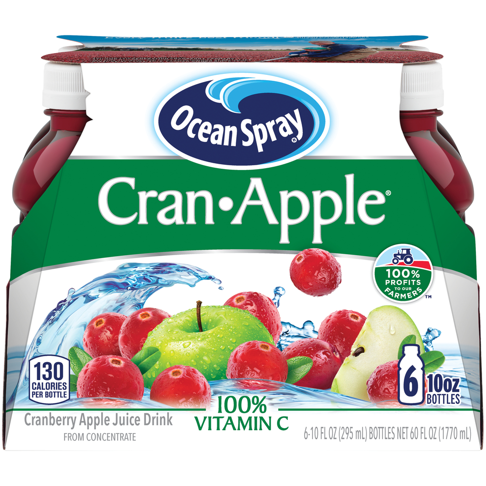 Ocean Spray Cran Apple Juice Drink Six 10 FL Oz Bottles "Per One Bottle: 130 Calories, 0g Total Fat, 60mg Sodium, 34g Total Carbohydrate, 0g Protein" ![]() |