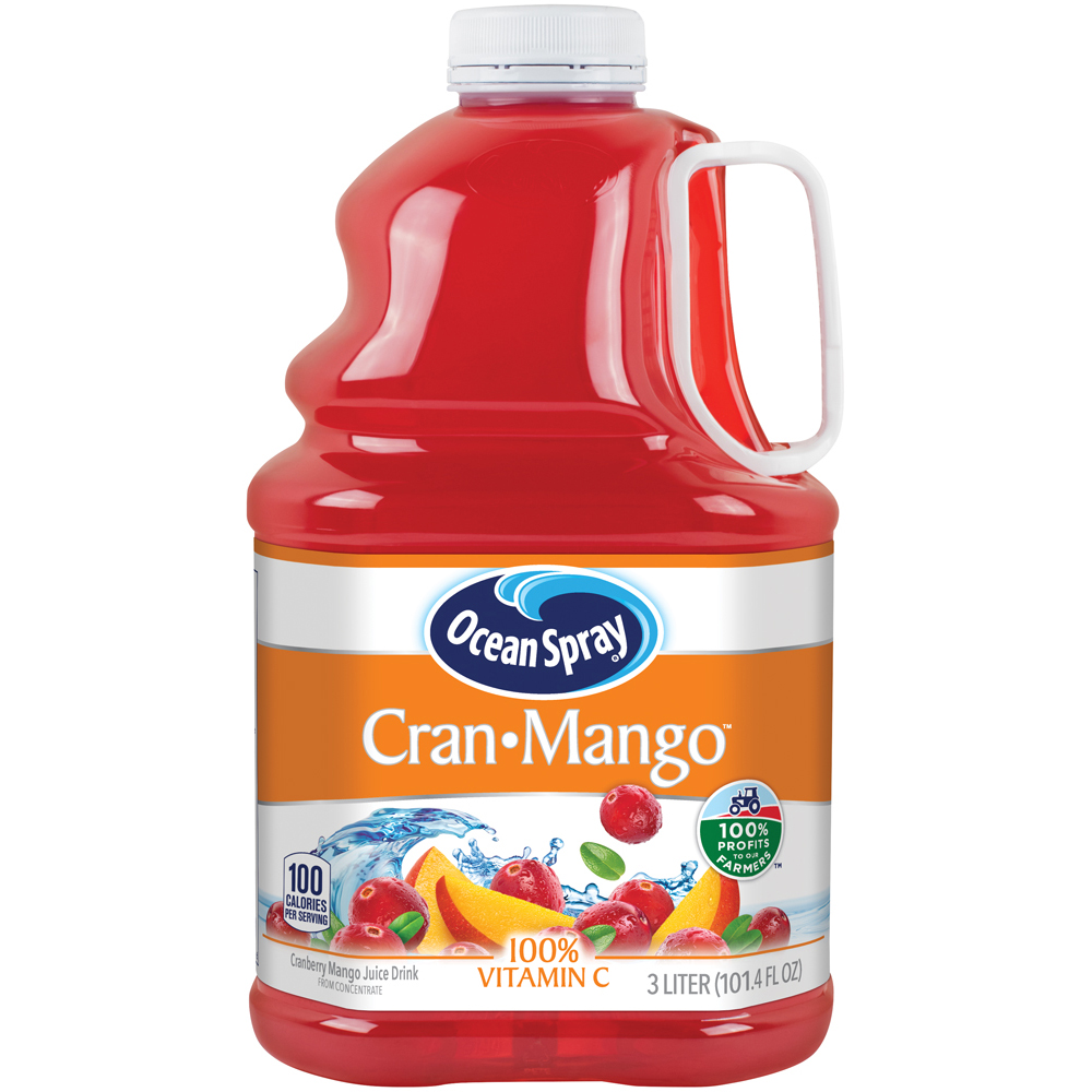 Ocean Spray Cran-Mango Juice Drink 3 Liter "Per One Cup Serving: 100 Calories, 0g Total Fat, 5mg Sodium, 27g Total Carbohydrate, 0g Protein" ![]() |