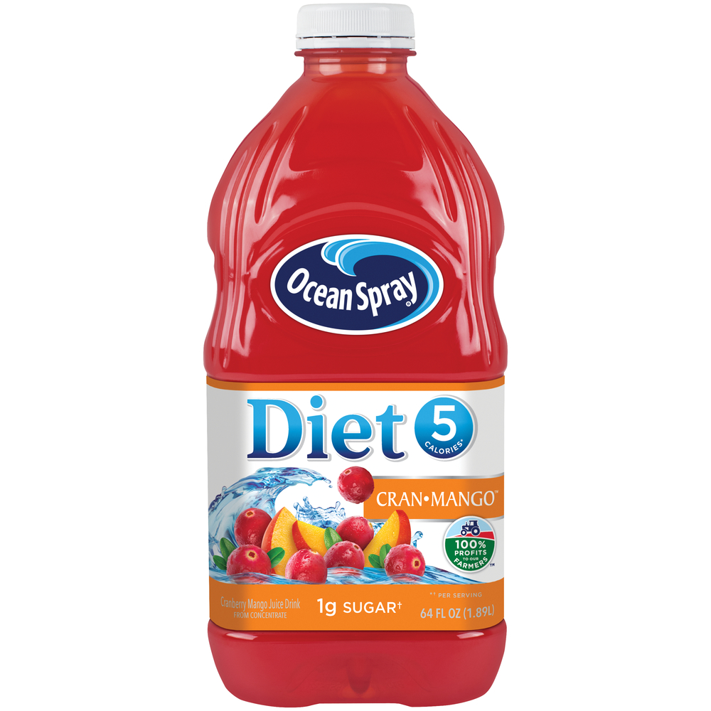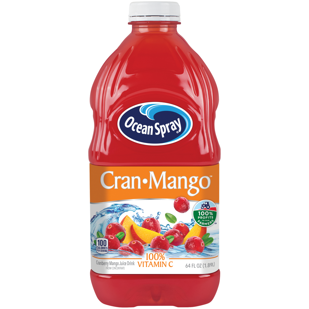 Ocean Spray Cran-Mango Juice Drink 64 FL Oz "Per One Cup Serving: 100 Calories, 0g Total Fat, 5mg Sodium, 27g Total Carbohydrate, 0g Protein" ![]() |