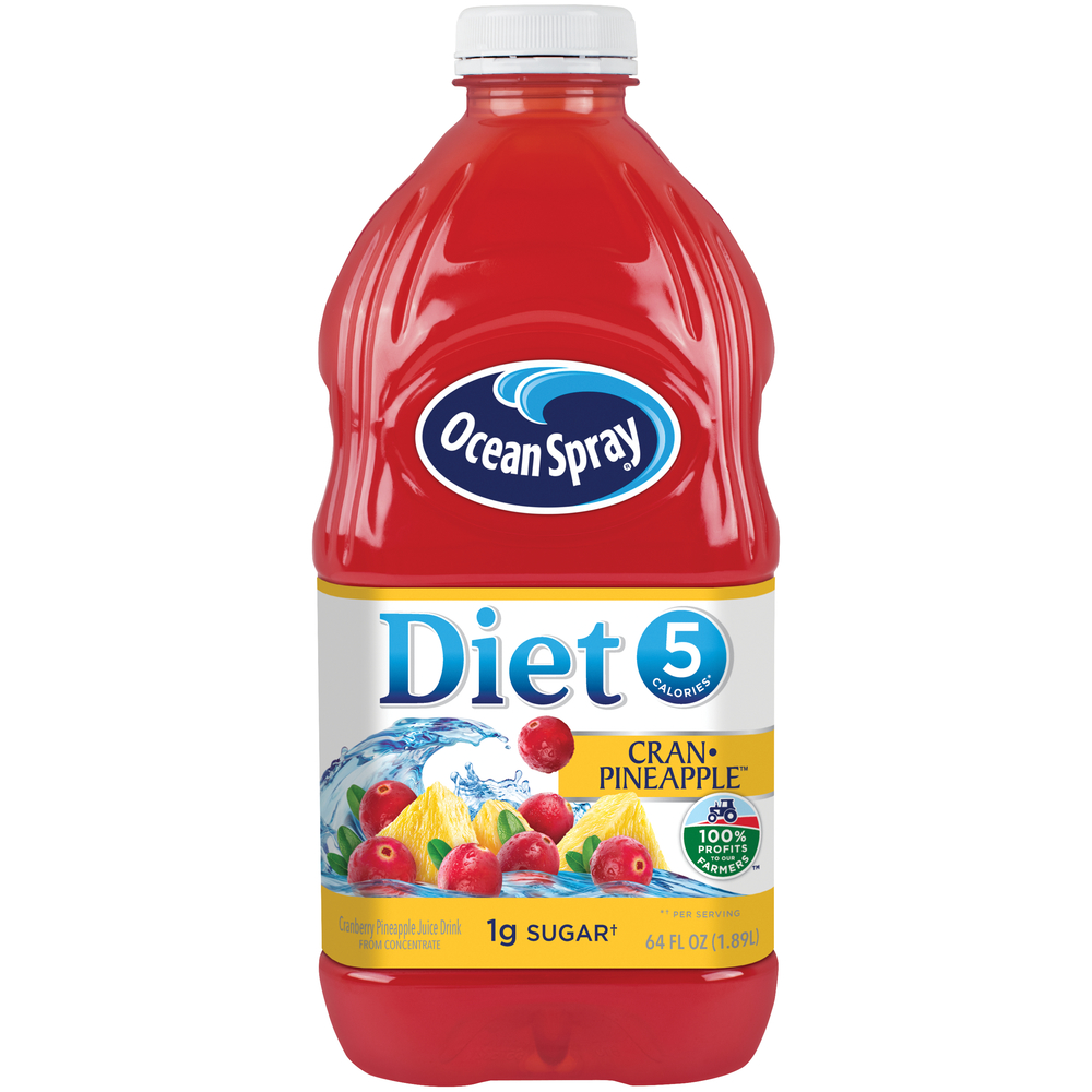 Diet Cran-Pineapple Juice Drink 64 FL Oz "Per One Cup Serving: 5 Calories, 0g Total Fat, 30mg Sodium, 2g Total Carbohydrate, 0g Protein" ![]() |