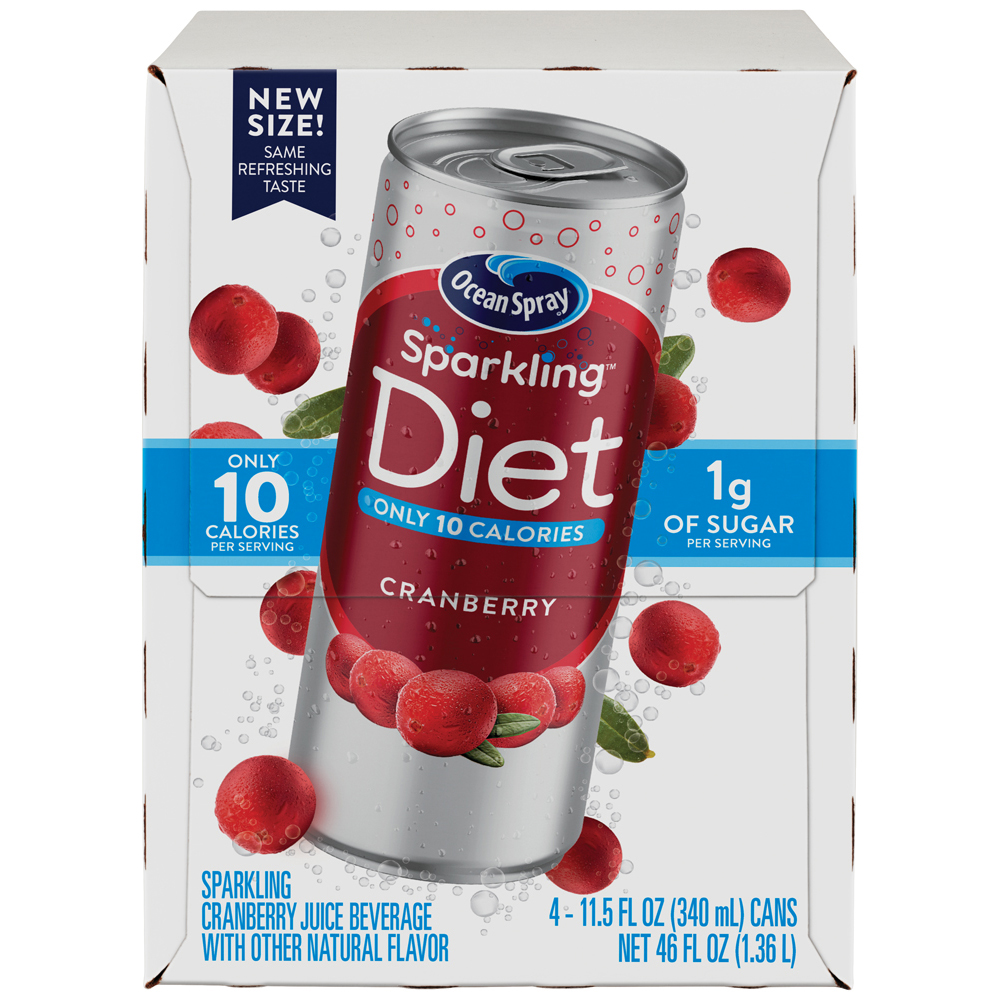 Ocean Spray Diet Cranberry Juice Four 11.5 FL Oz Cans "Per One Can: 10 Calories, 0g Total Fat, 65mg Sodium, 4g Total Carbohydrate, 0g Protein" ![]() |