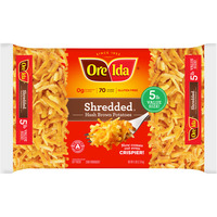 Ore Ida Shredded Hash Brown Potatoes 5 LB Per 1.25 Cup: 60 Calories, 0g Saturated Fat, 30mg Sodium, 1g Protein. ![]() |