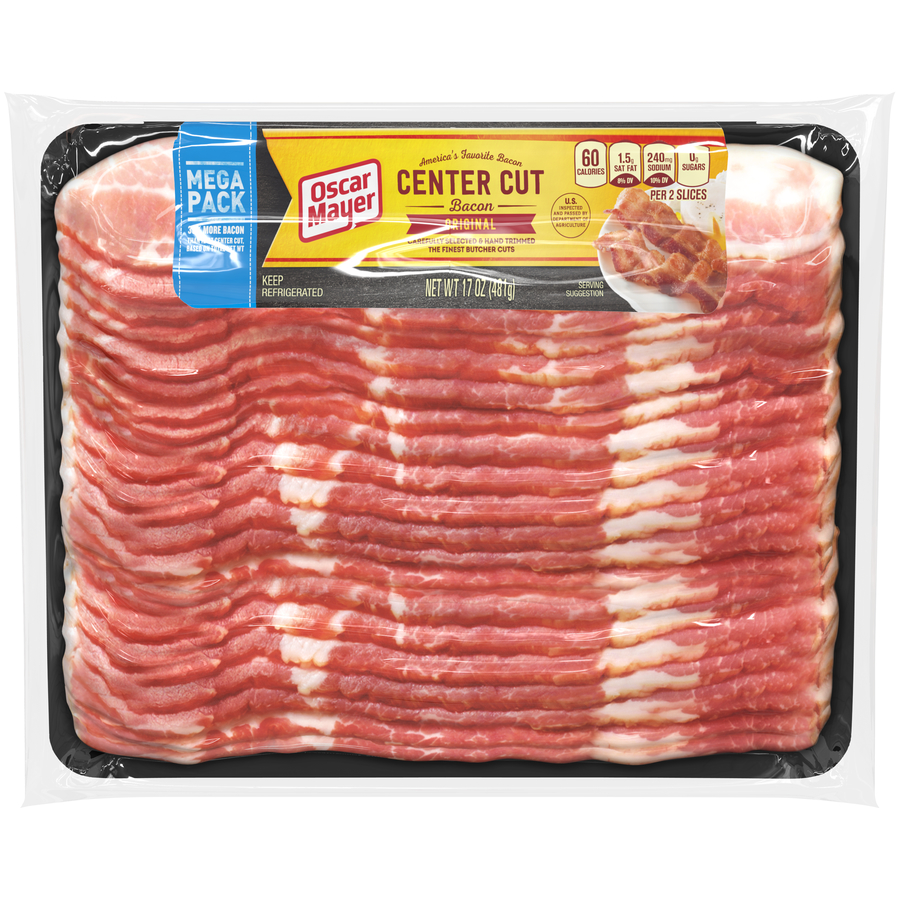 Center Cut Original Bacon 17 Oz "Two Slices: 60 Calories, 4.5g Total Fat, 15mg Cholesterol, 240mg Sodium, 0g Total Carb, 5g Protein" ![]() |