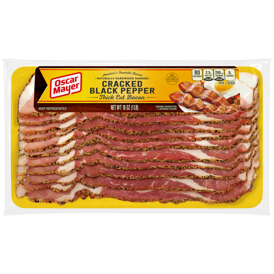 Cracked Black Pepper Thick Cut 16 Oz "One Skillet Cooked Slice: 80 Calories, 7g Total Fat, 10mg Cholesterol, 290mg Sodium, 1g Total Carb, 3g Protein" ![]() |