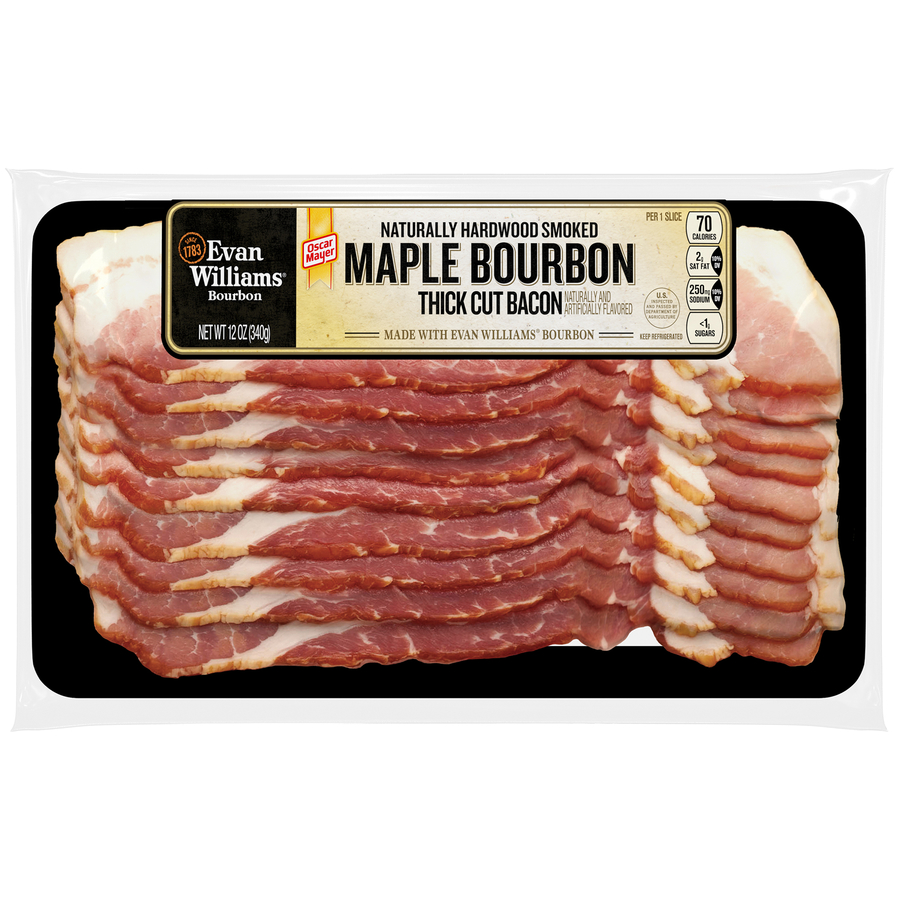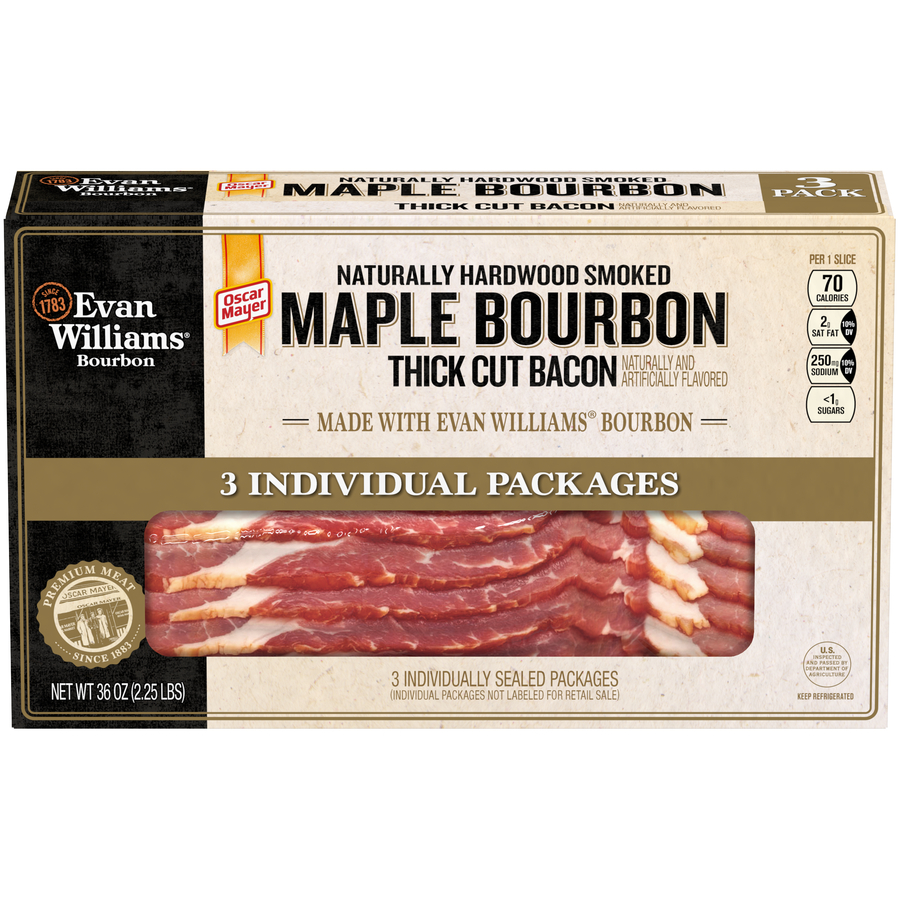 Evan Williams Maple Bourbon Thick Cut 3 Pack 36 Oz "Per One Slice: 70 Calories, 5g Total Fat, 250mg Sodium, <1g Total Carb, 5g Protein" ![]() |