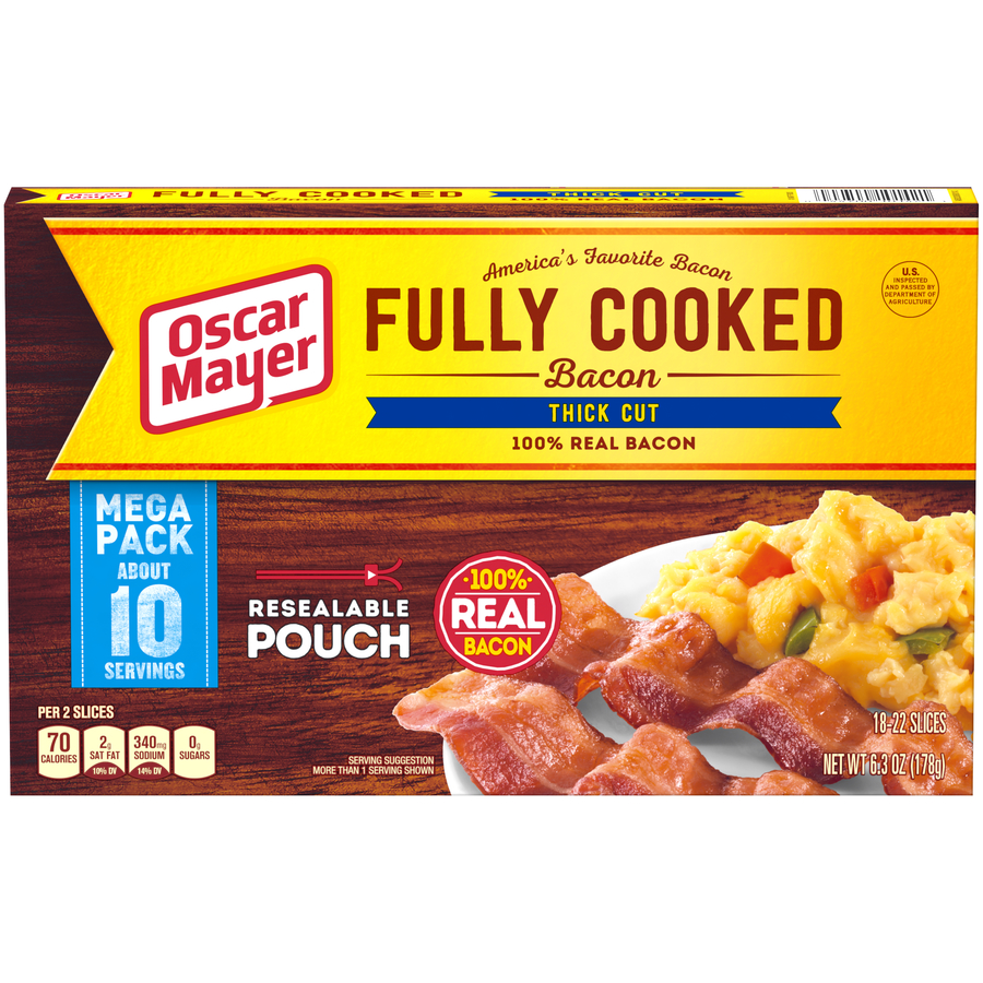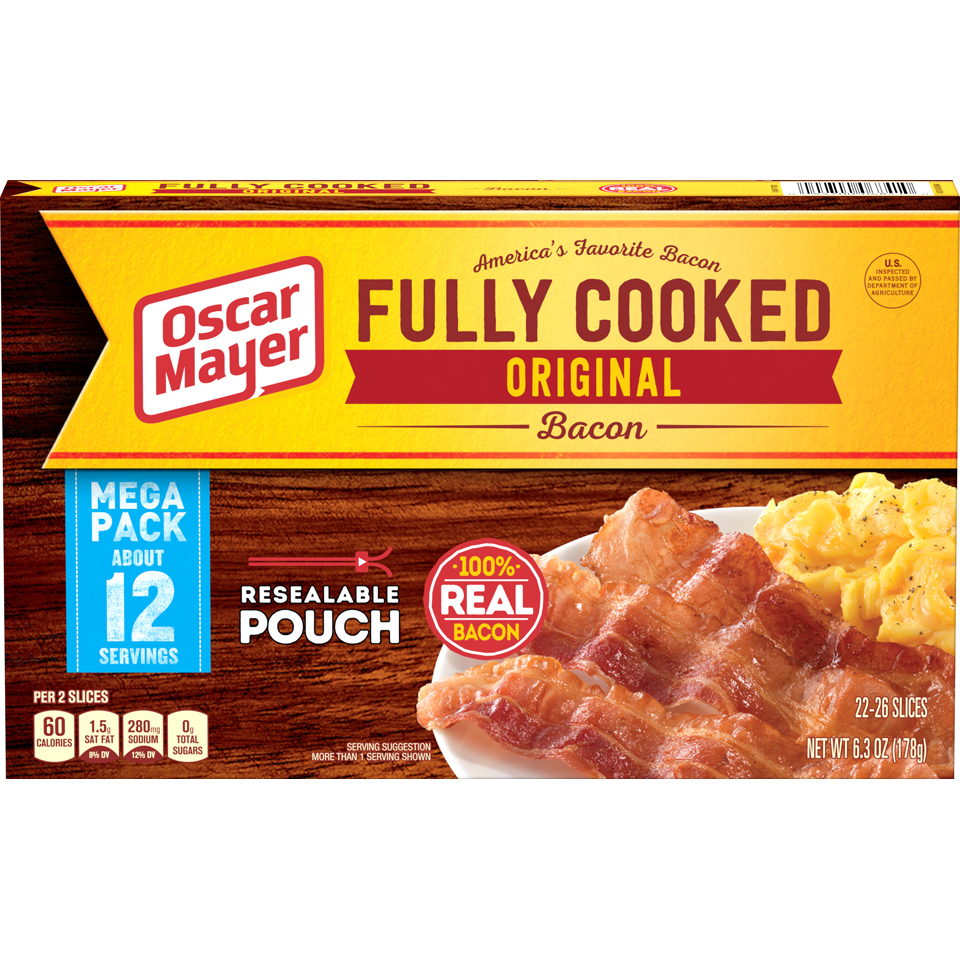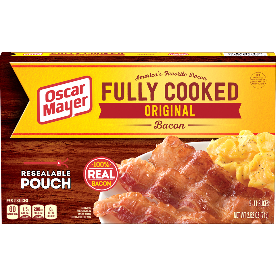 Fully Cooked Original Bacon 6.3 Oz "Two Slices: 60 Calories, 4g Total Fat, 15mg Cholesterol, 280mg Sodium, 0g Total Carb, 6g Protein" ![]() |