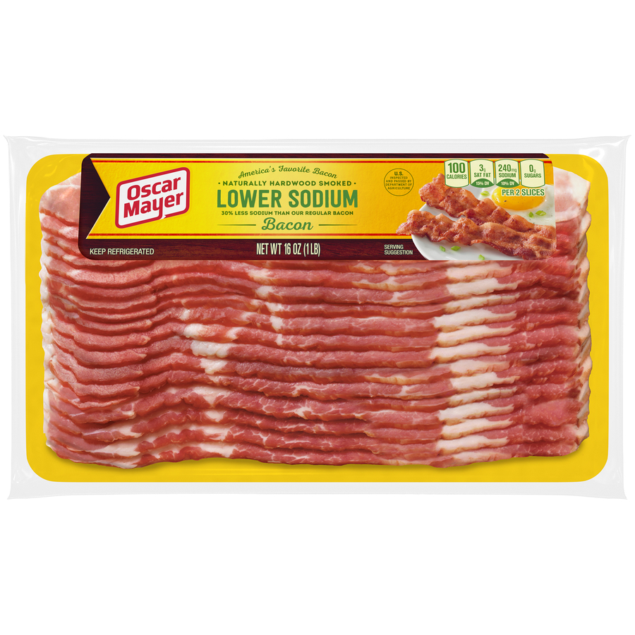 Lower Sodium Bacon 16 Oz "Two Skillet Cooked Slices: 100 Calories, 8g Total Fat, 20mg Cholesterol, 240mg Sodium, 0g Total Carb, 6g Protein" ![]() |