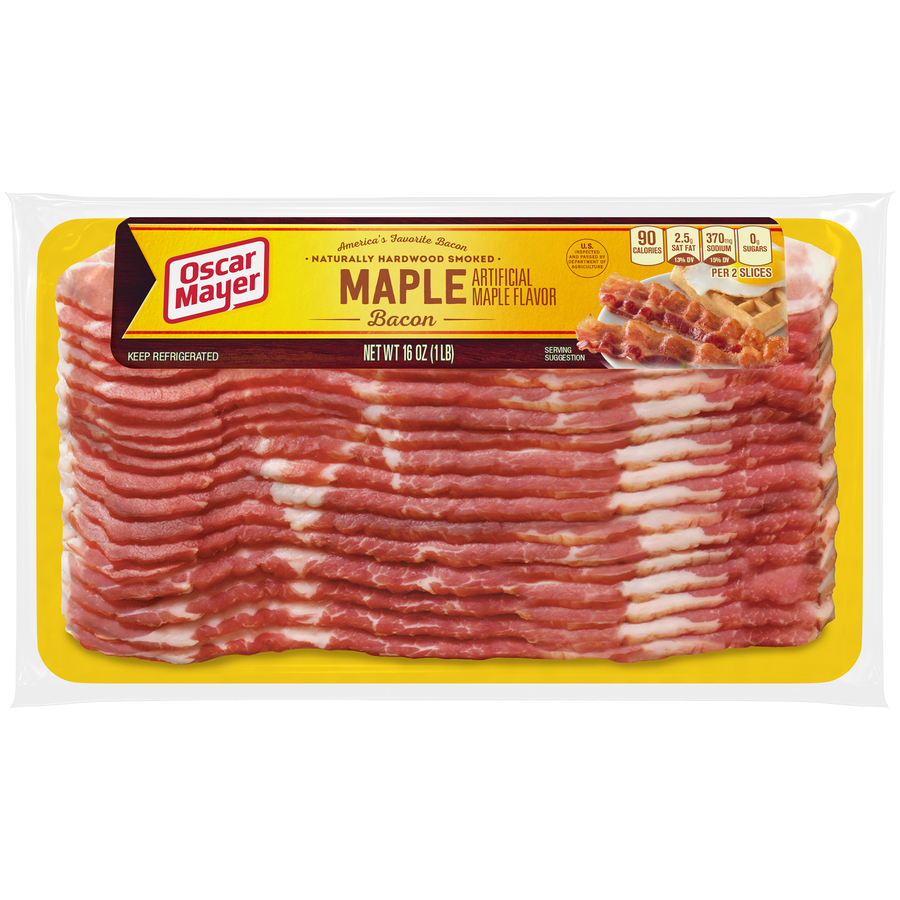 Oscar Mayer Maple Bacon 16 Oz "Two Skillet Cooked Slices: 90 Calories, 7g Total Fat, 20mg Cholesterol, 370mg Sodium, 0g Total Carb, 6g Protein" ![]() |