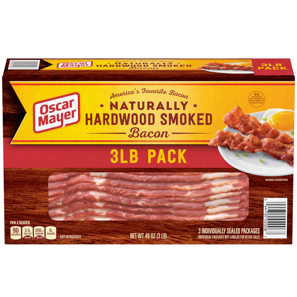 Naturally Hardwood Smoked Bacon 22 Oz "Per Two Skillet Cooked Slices: 90 Calories, 8g Total Fat, 20mg Cholesterol, 350mg Sodium, 0g Total Carb, 6g Protein" ![]() |