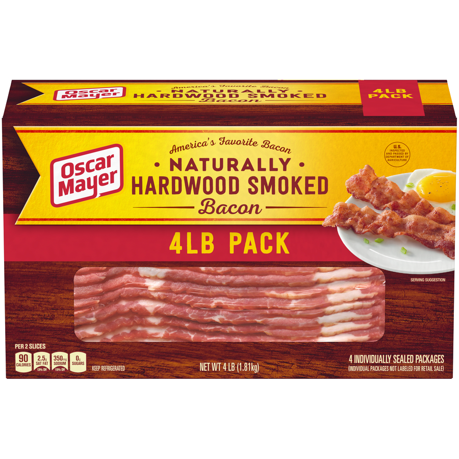 Naturally Hardwood Smoked Bacon 4 LB "Per Two Skillet Cooked Slices: 90 Calories, 7g Total Fat, 20mg Cholesterol, 350mg Sodium, 0g Total Carb, 7g Protein" ![]() |