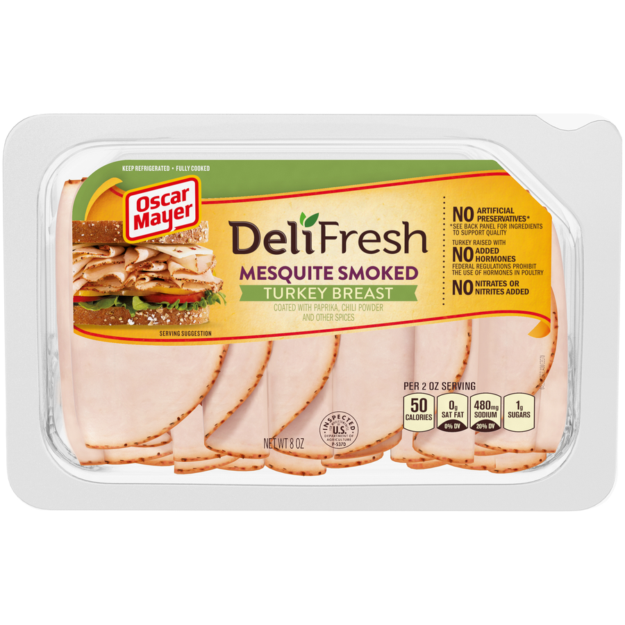 Deli Smoked Mesquite Smoked Turkey Breast 8 Oz "Per 2 Ounces: 50 Calories, 1g Total Fat, 20mg Cholesterol, 480mg Sodium, 1g Total Carb, 9g Protein" ![]() |