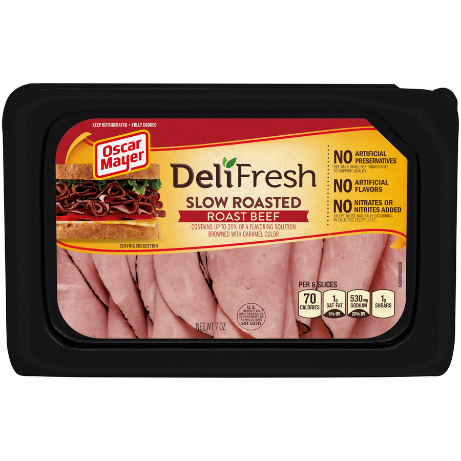 Deli Fresh Slow Roasted Roast Beef 7 Oz "Per Six Slices: 70 Calories, 2.5g Total Fat,30mg Cholesterol, 530mg Sodium, 1g Total Carb, 10g Protein" ![]() |