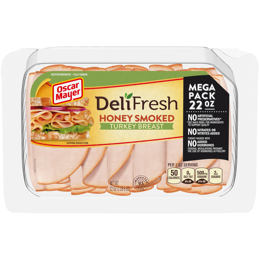 Deli Fresh Honey Smoked Turkey Breast, Mega Pack 22 Oz "Per 2 Ounces: 50 Calories, 1g Total Fat, 20mg Cholesterol, 500mg Sodium, 2g Total Carb, 9g Protein" ![]() |