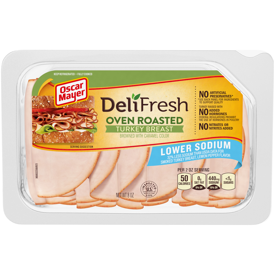 Deli Fresh Oven Roasted Turkey Breast 9 Oz "Per 2 Ounces: 50 Calories, 1g Total Fat, 20mg Cholesterol, 500mg Sodium, 2g Total Carb, 9g Protein" ![]() |