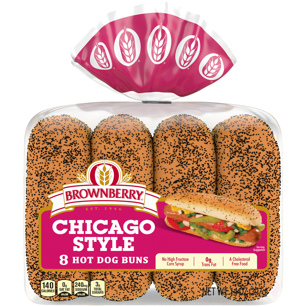 BrownBerry Chicago Style Hot Dog Buns 14 Oz "Per One Bun: 140 Calories, 2g Total Fat, 0mg Cholesterol, 240mg Sodium, 25g Total Carb, 4g Protein" ![]() |
