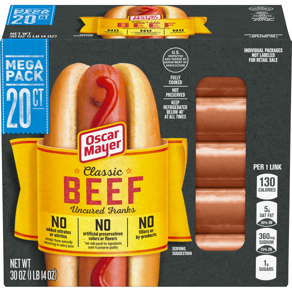 Classic Beef Uncured Franks 20 Count 30 Oz "Per One Link: 130 Calories, 12g Total Fat, 20mg Cholesterol, 360mg Sodium, <1g Total Carb, 4g Protein" ![]() |