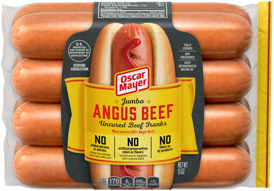 Jumbo Angus Uncured Beef Franks 15 Oz "Per One Link: 170 Calories, 15g Total Fat, 25mg Cholesterol, 450mg Sodium, <1g Total Carb, 6g Protein" ![]() |