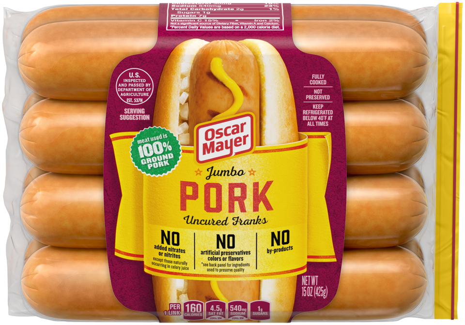 Jumbo Pork Uncured Franks 15 Oz "Per One Link: 160 Calories, 14g Total Fat, 30mg Cholesterol, 540mg Sodium, 2g Total Carb, 7g Protein" ![]() |