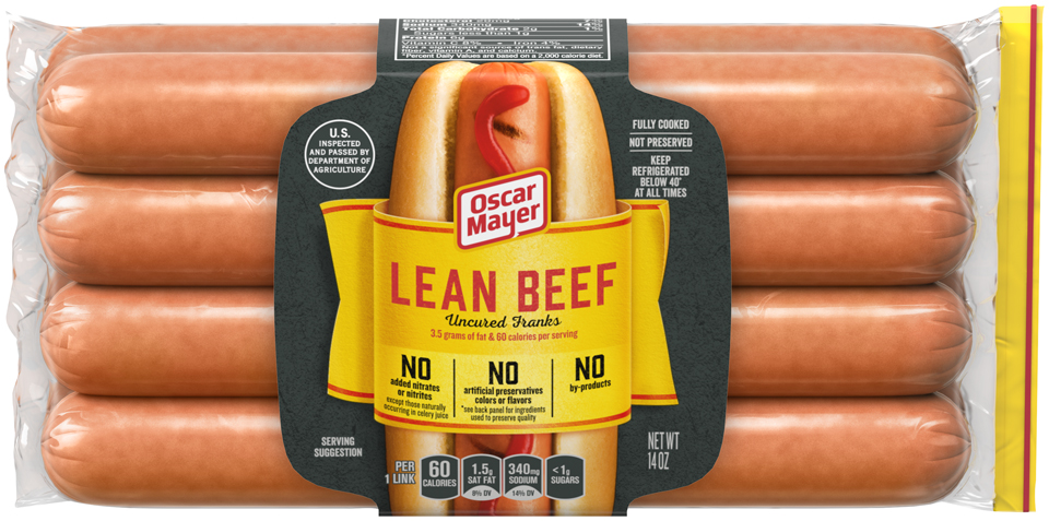 Lean Beef Uncured Franks 14 Oz "Per One Link: 60 Calories, 3.5g Total Fat, 20mg Cholesterol, 340mg Sodium, 2g Total Carb, 6g Protein" ![]() |