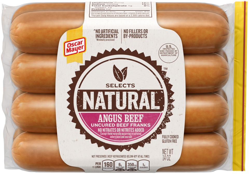 Selects Natural Angus Uncured Beef Franks 14 Oz "Per One Link: 160 Calories, 14g Total Fat, 35mg Cholesterol, 350mg Sodium, 1g Total Carb, 6g Protein" ![]() |