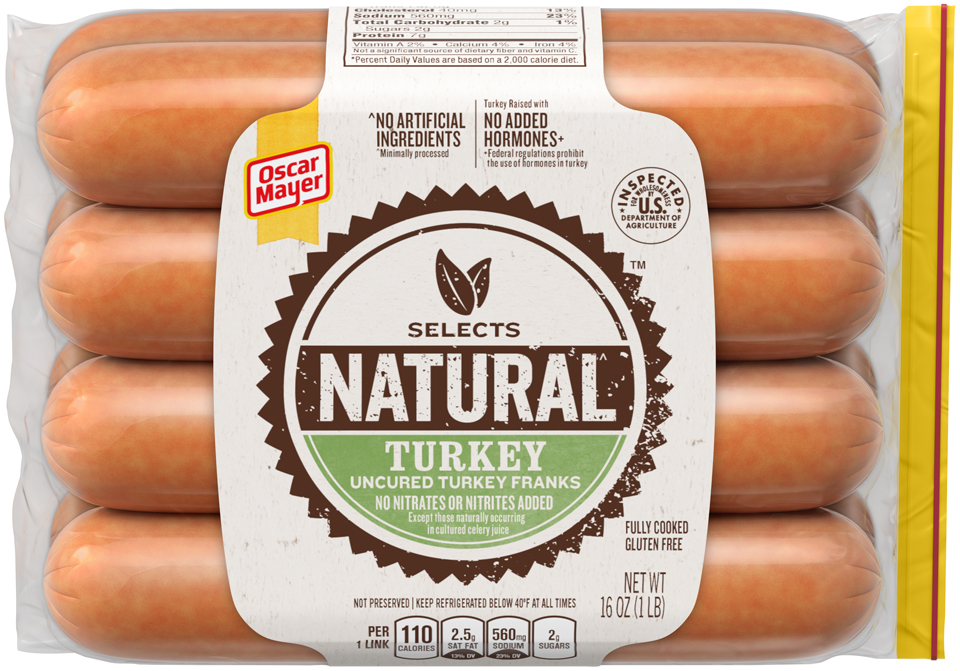 Selects Natural Uncured Turkey Franks 1 LB "Per One Link: 110 Calories, 8g Total Fat, 40mg Cholesterol, 560mg Sodium, 2g Total Carb, 7g Protein" ![]() |