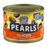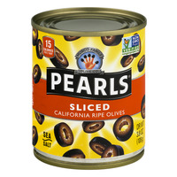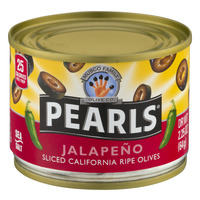 Pearls is a brand name for an ancient food know as the olive. Olives go way back to beginning of human beginnings, mentioned in the Bible many times. The olive groves in Jerusalem are huge and legendary even today! Thanks to Spanish Missionaries who, bless their hearts brought a slice of home with them to California with olive trees way back in the 1700's, we now have a commodity in the United States know as the California Olive. The climate in California is perfect for the olive trees. Food Run Fix's personal favorite is Stuffed Queen Garlic Olives. They have real thick slivers of garlic in them and man, are they delicious! Of course, black sliced olives are great on hard shell tacos, too!