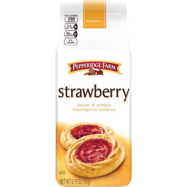 Strawberry Sweet And Simple Thumbprint Cookies 6.75 Oz "130 Calories, 2.5g Saturated Fat, 65mg Sodium And 11g Sugars Per 3 Cookies." |