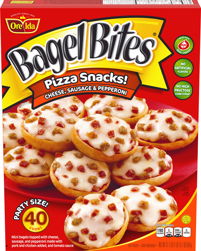 Bagel Bites Combination Pizza Snacks 40 Each 31.1Oz "Per 4 Mini Bagels: 190 Calories, 2g Sat Fat, 390mg Sodium And 2g Sugars." ![]() |