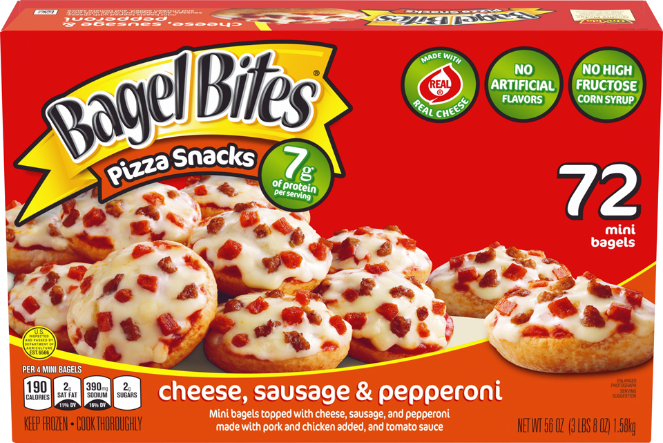 Bagel Bites Combo Pizza Snacks 72 Each 56 Oz "Per 4 Mini Bagels: 190 Calories, 2g Sat Fat, 390mg Sodium And 2g Sugars." ![]() |