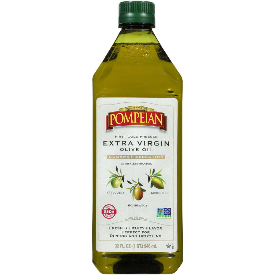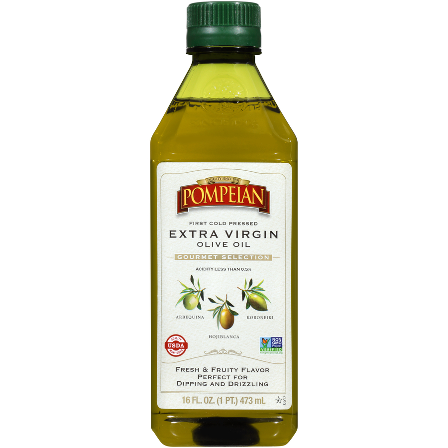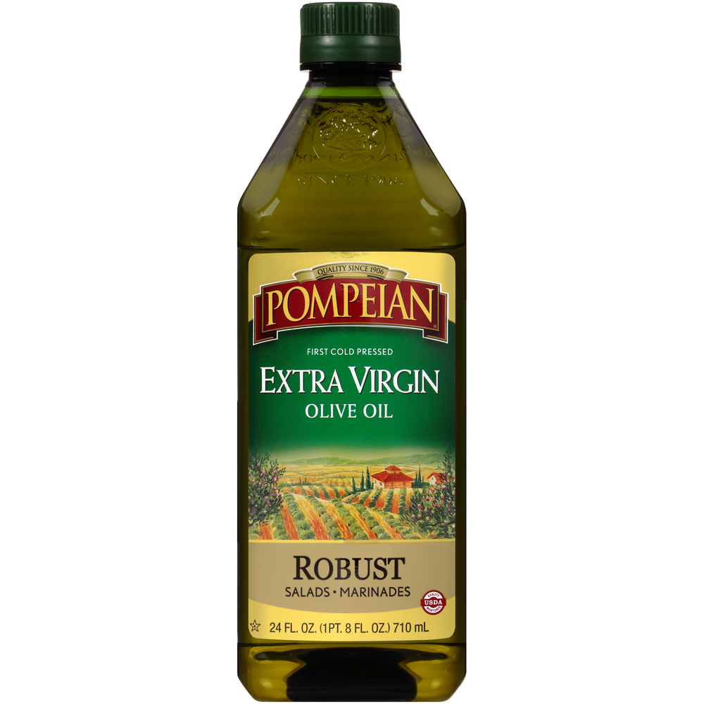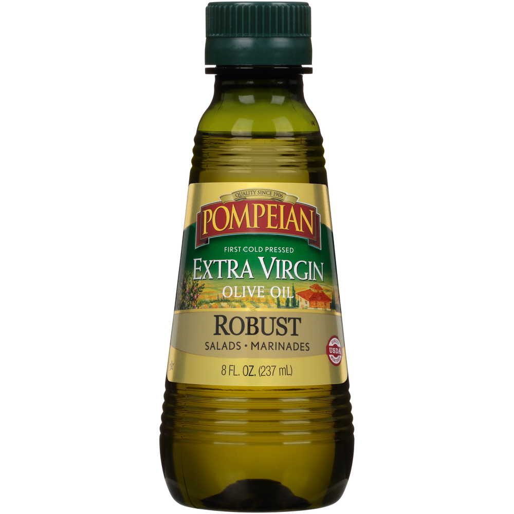 Pompeian Extra Virgin Olive Oil, Robust For Salads & Marinades 8 FL Oz "Per One TBSP: 120 Calories, 14g Total Fat, 0mg Cholesterol, 0mg Sodium, 0g Total Carbohydrate, 0g Protein" ![]() |