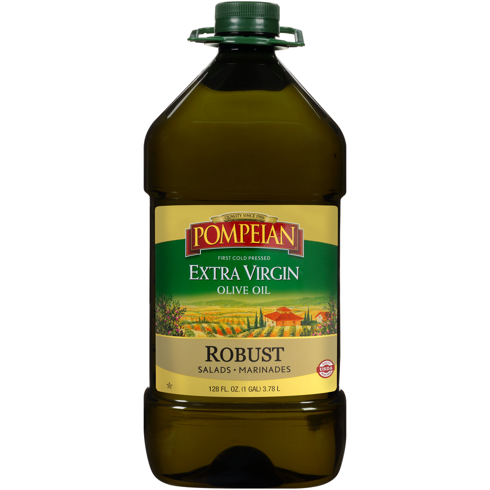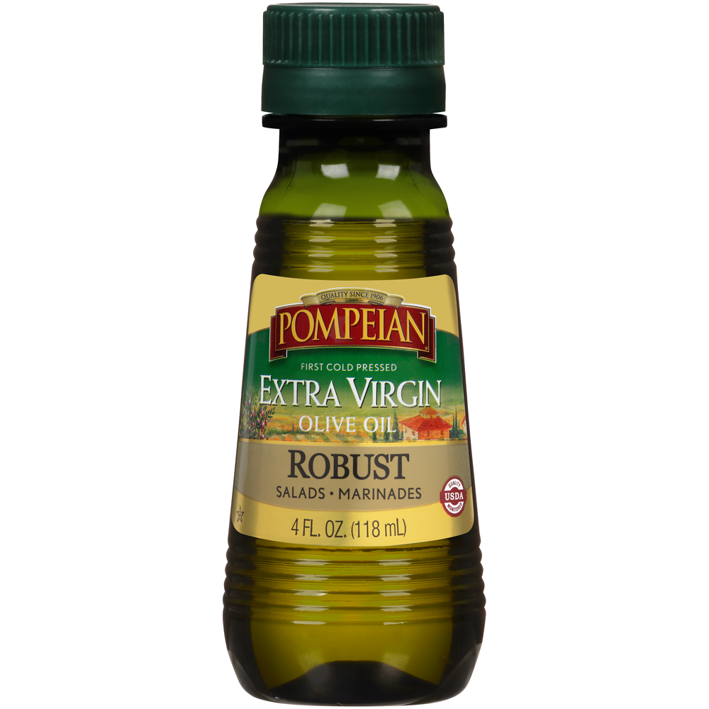 Pompeian Extra Virgin Olive Oil, Robust For Salads & Marinades 4 FL Oz "Per One TBSP: 120 Calories, 14g Total Fat, 0mg Cholesterol, 0mg Sodium, 0g Total Carbohydrate, 0g Protein" ![]() |