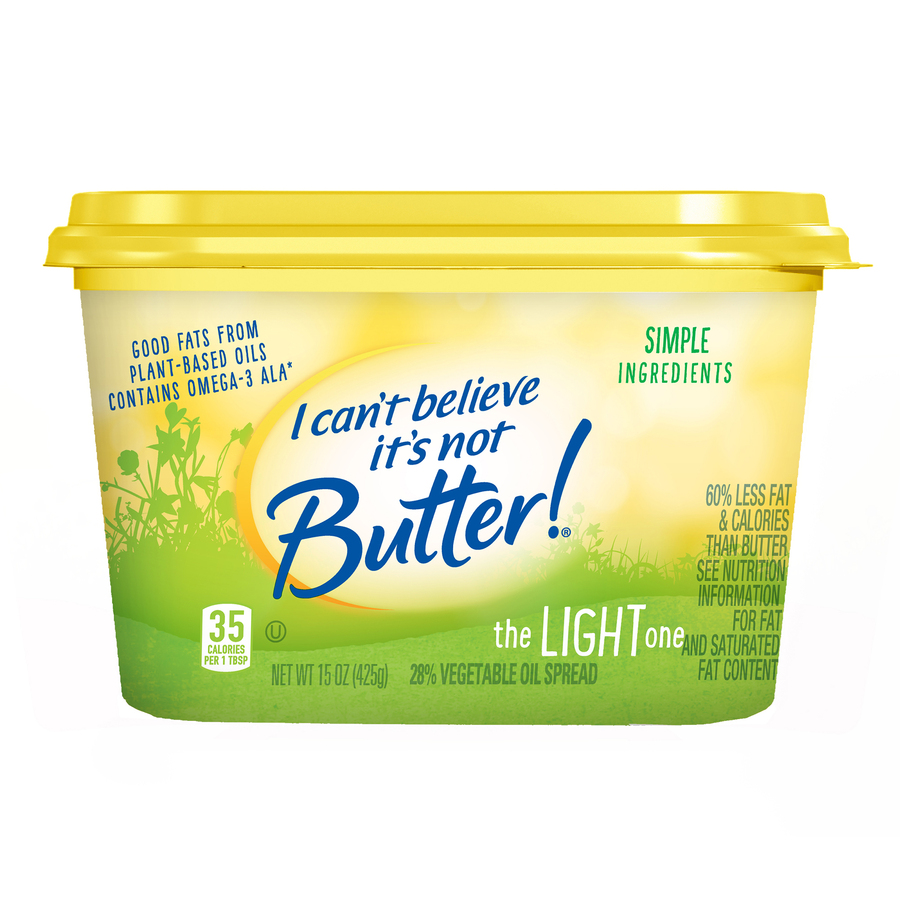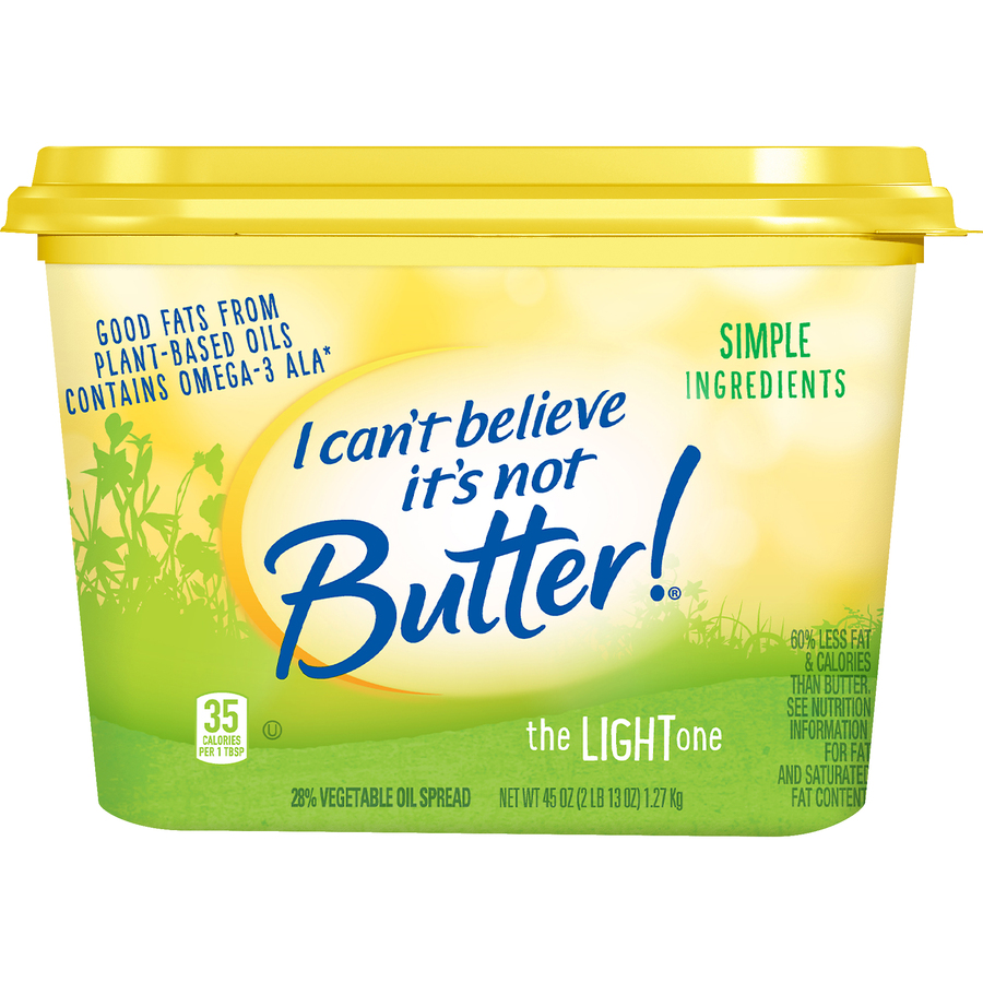 I Can't Believe It's Not Butter Light Oil Spread 45 Oz "Per One TBSP: 35 Calories, 4g Total Fat, 85mg Sodium, 0g Total Carb, 0g Protein" ![]() |