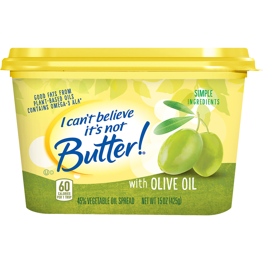 I Can't Believe It's Not Butter Olive Oil Spread 15 Oz "Per One TBSP: 60 Calories, 6g Total Fat, 90mg Sodium, 0g Total Carb, 0g Protein" ![]() |